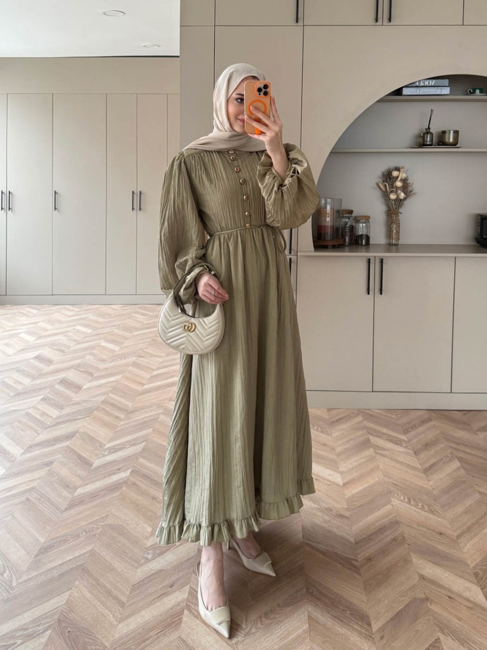 Asimetrik Fırfırlı Piliseli Elbise
