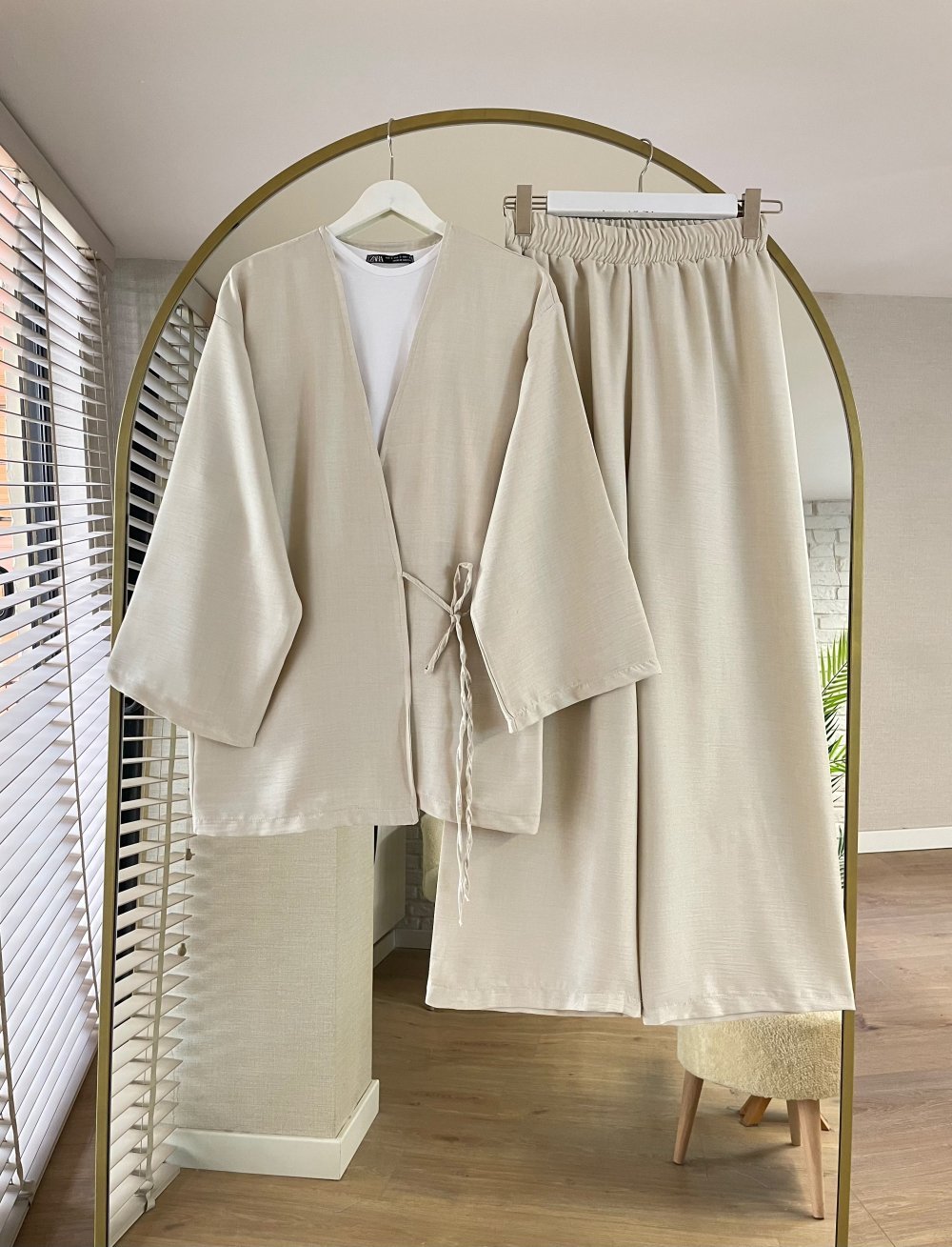 Bağlamalı Keten Kimono Takım