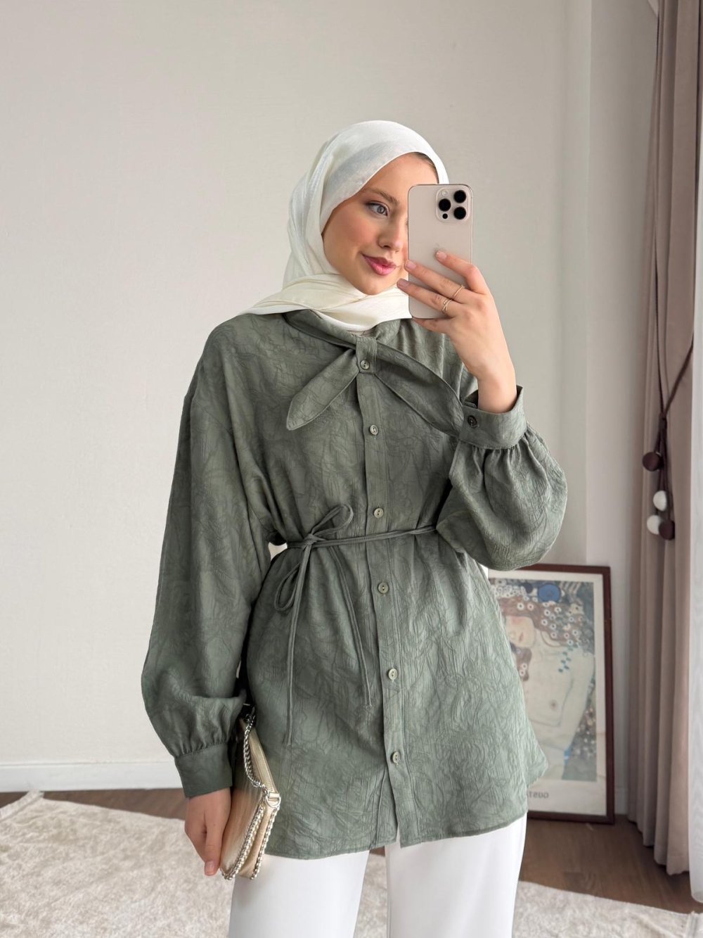 Batik Desenli Fiyonk Yaka Gömlek