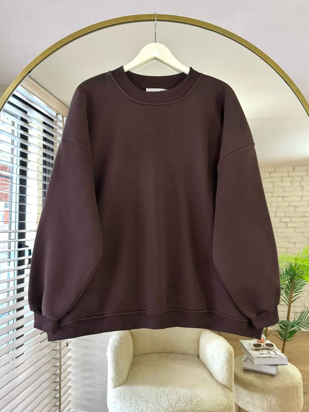Bisiklet Yaka Oversize Sweatshirt Kahverengi