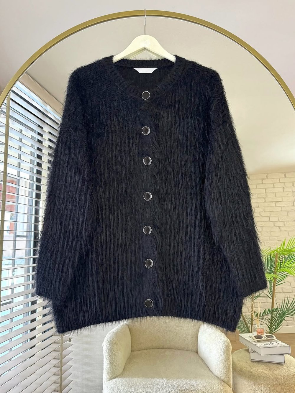 Bisiklet Yaka Sakallı Hırka Siyah