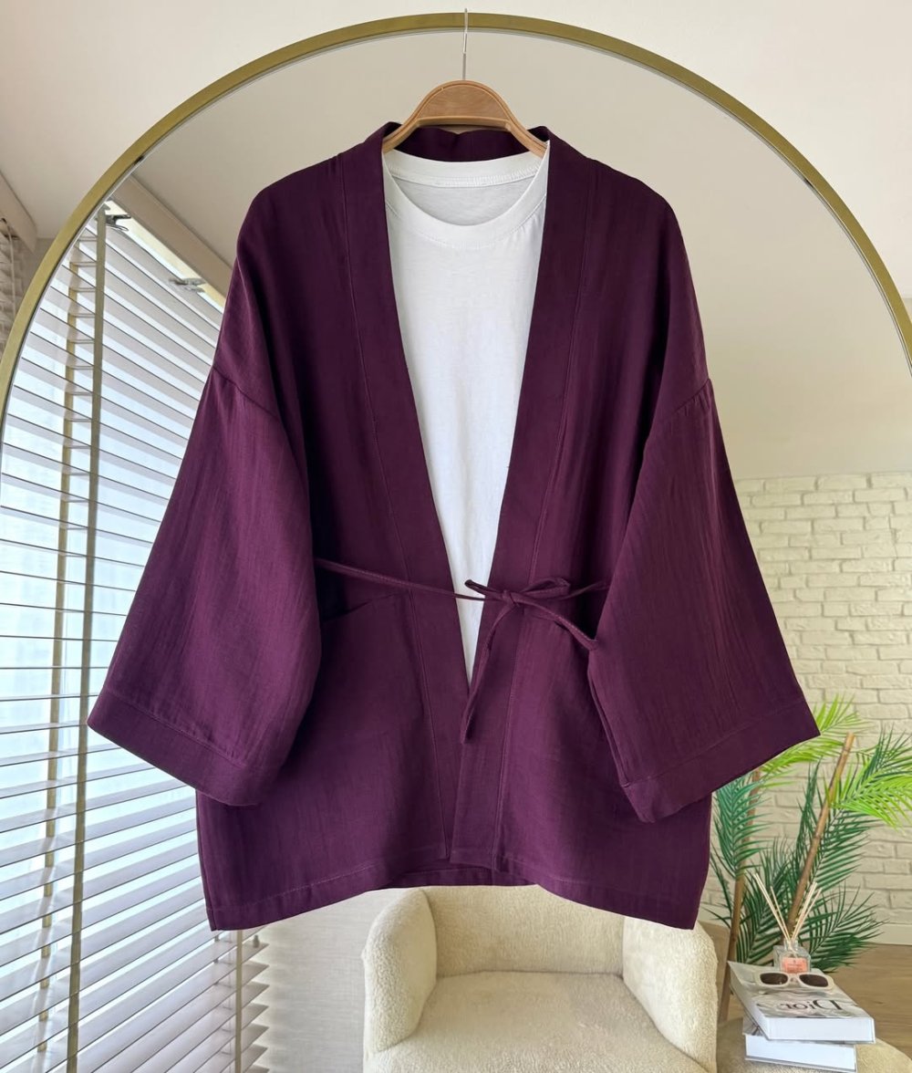 Cepli Müslin Kimono Mürdüm