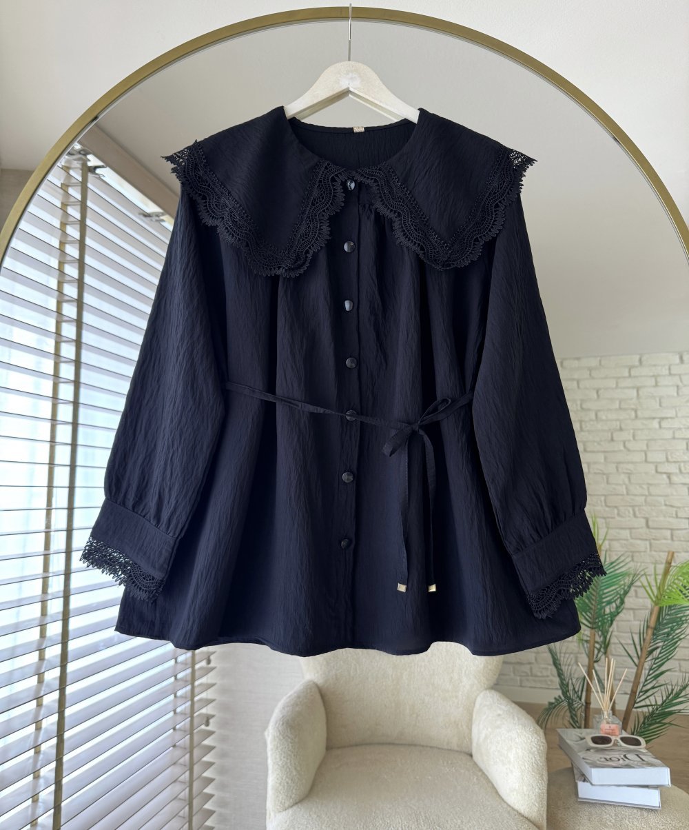 Dantel Detaylı Gömlek Siyah
