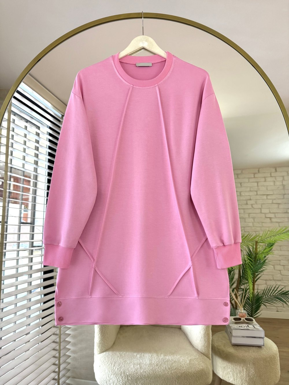 Düğme Detaylı Çımalı Tunik Pembe