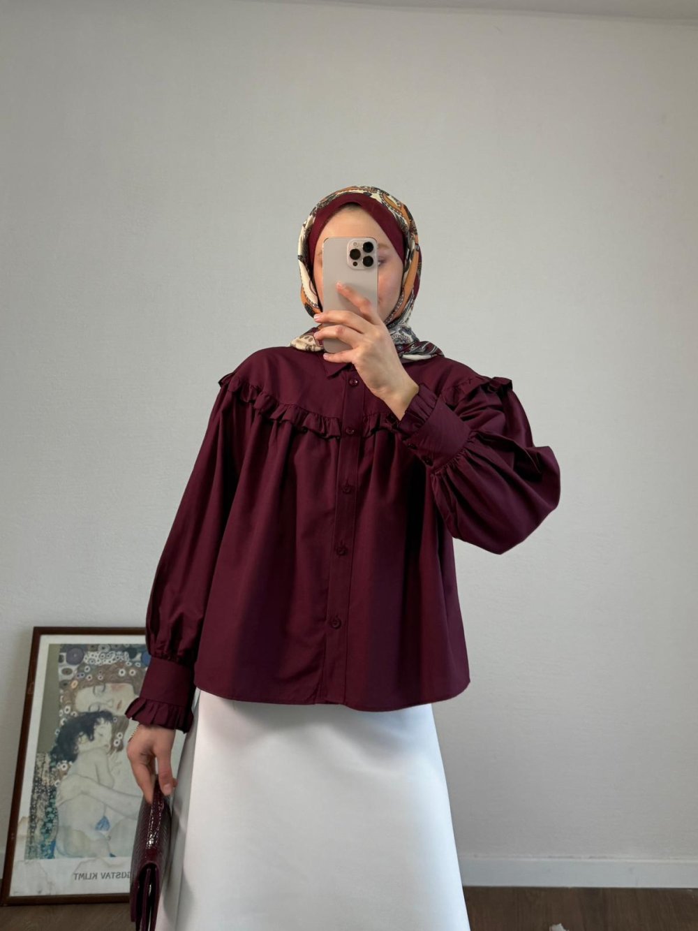 Fırfırlı Kısa Gömlek Bordo