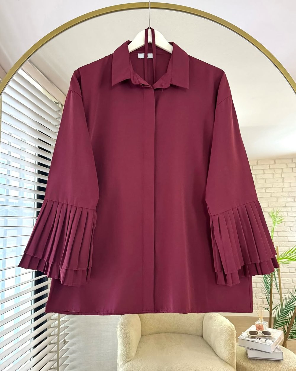Kolları Piliseli Poplin Gömlek