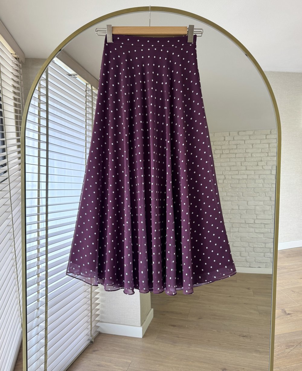 Puantiyeli Şifon Etek Mürdüm