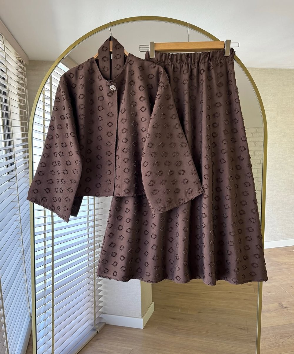 Retro Etekli Takım Kahverengi