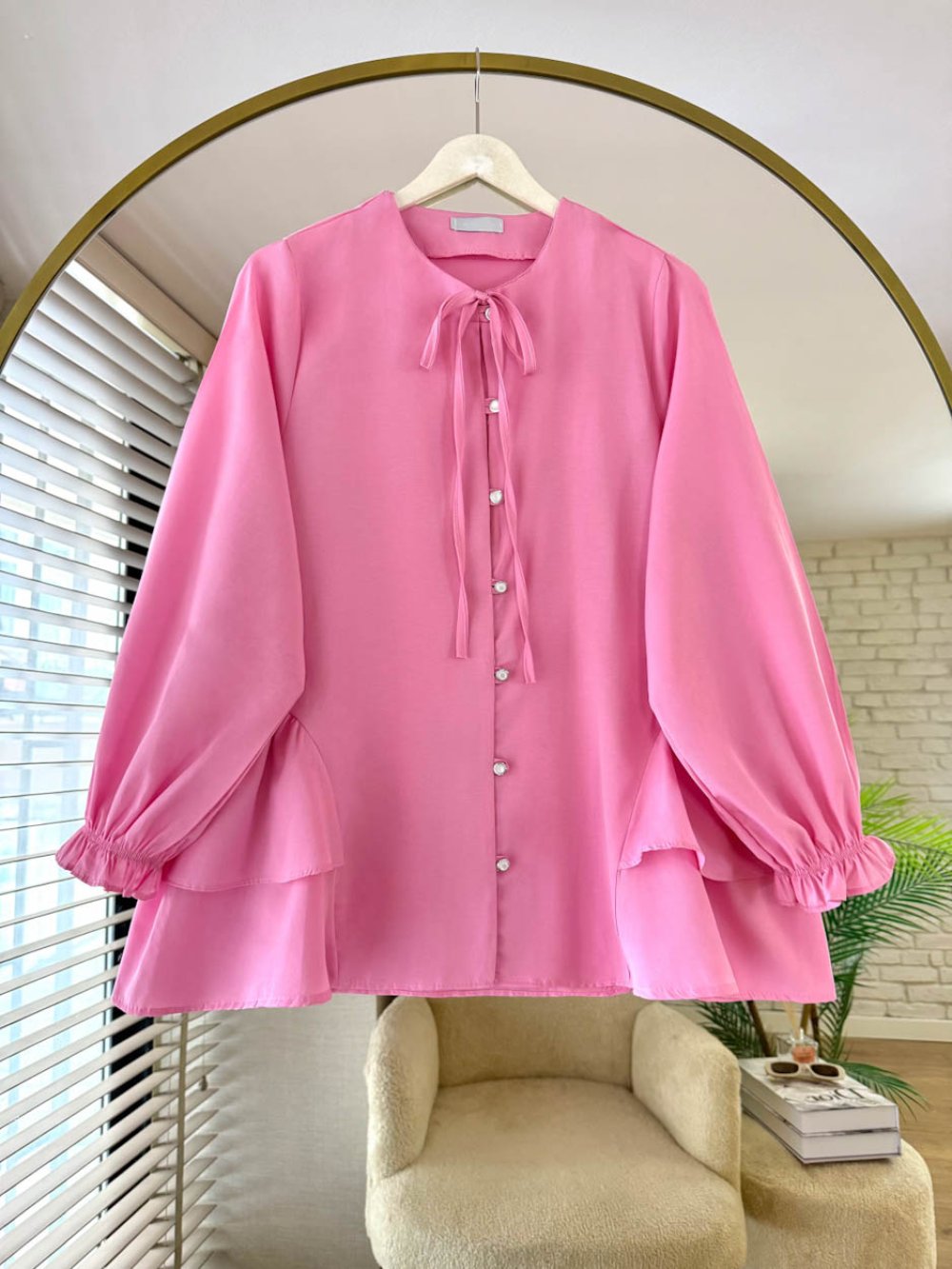 Yaka Bağcıklı Poplin Gömlek