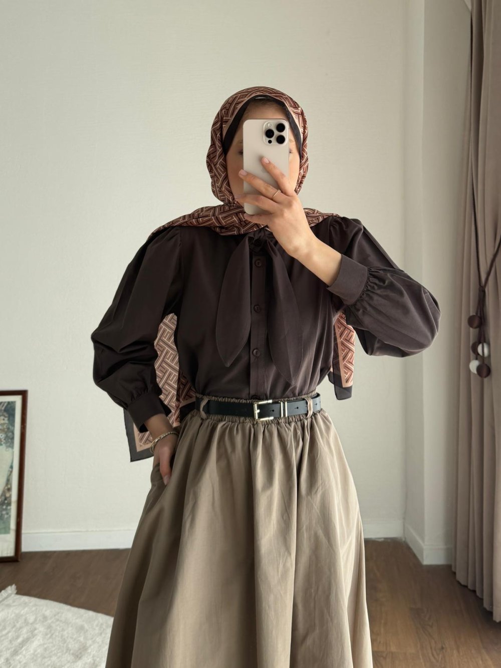 Yakası Bağcıklı Kısa Poplin Gömlek