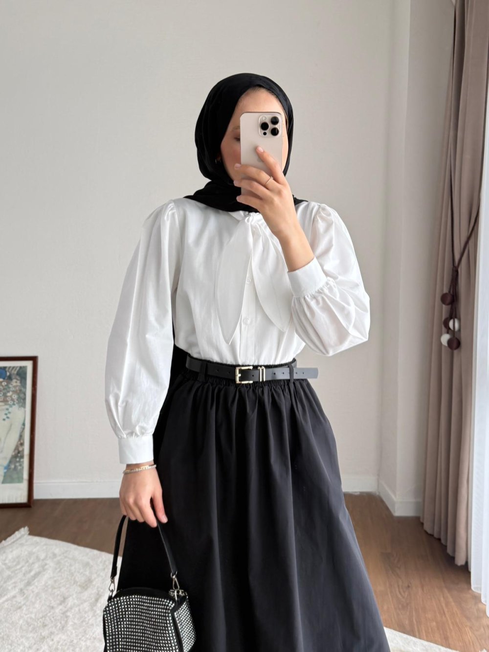 Yakası Bağcıklı Kısa Poplin Gömlek