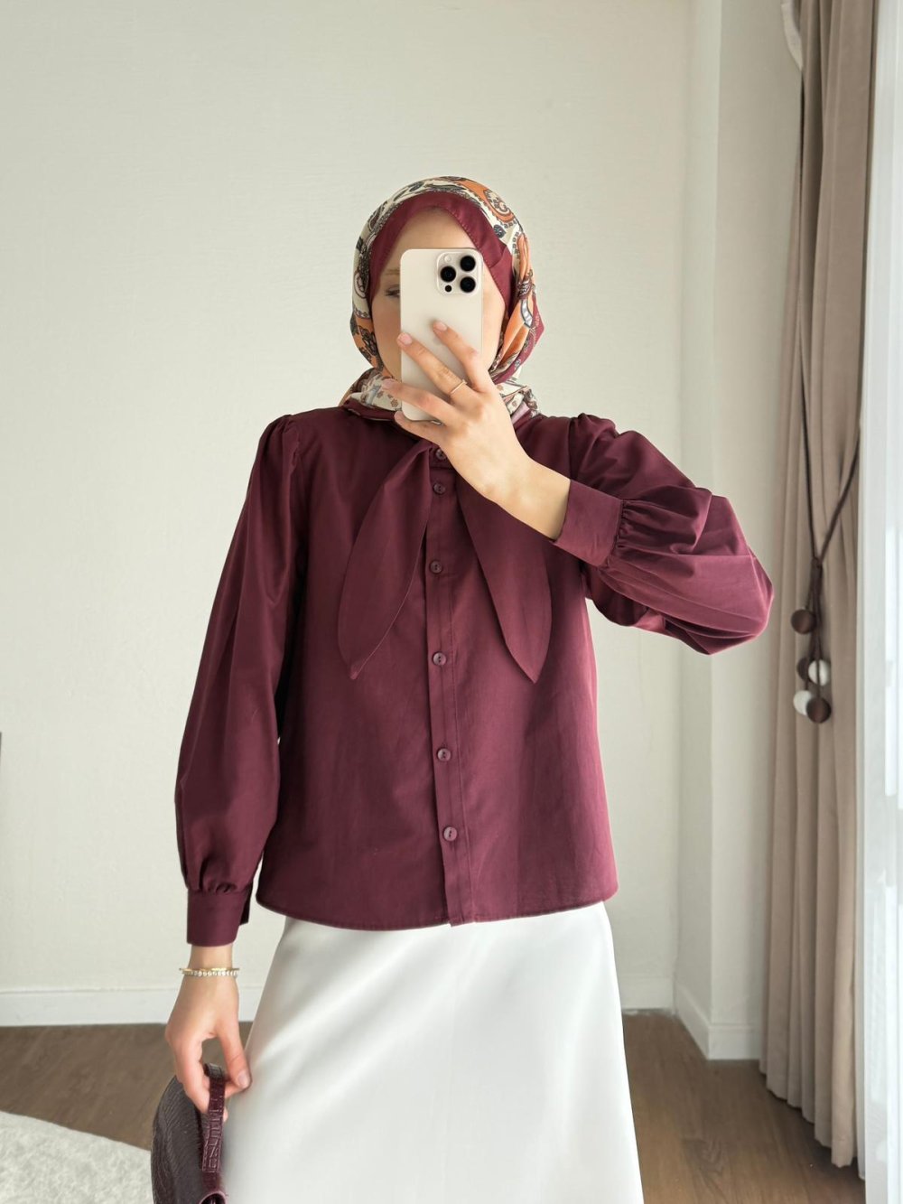 Yakası Bağcıklı Kısa Poplin Gömlek