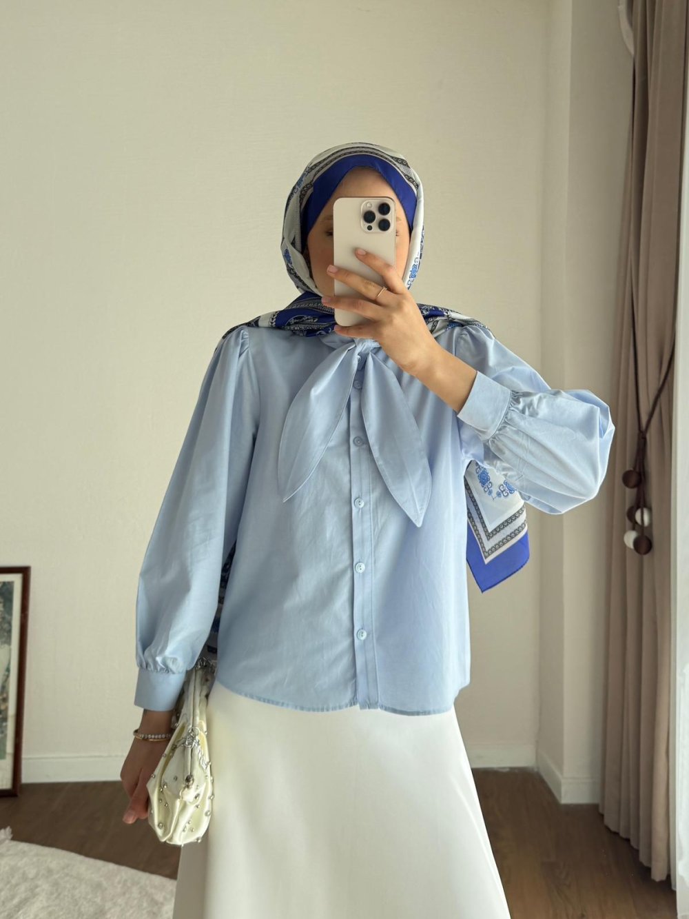 Yakası Bağcıklı Kısa Poplin Gömlek