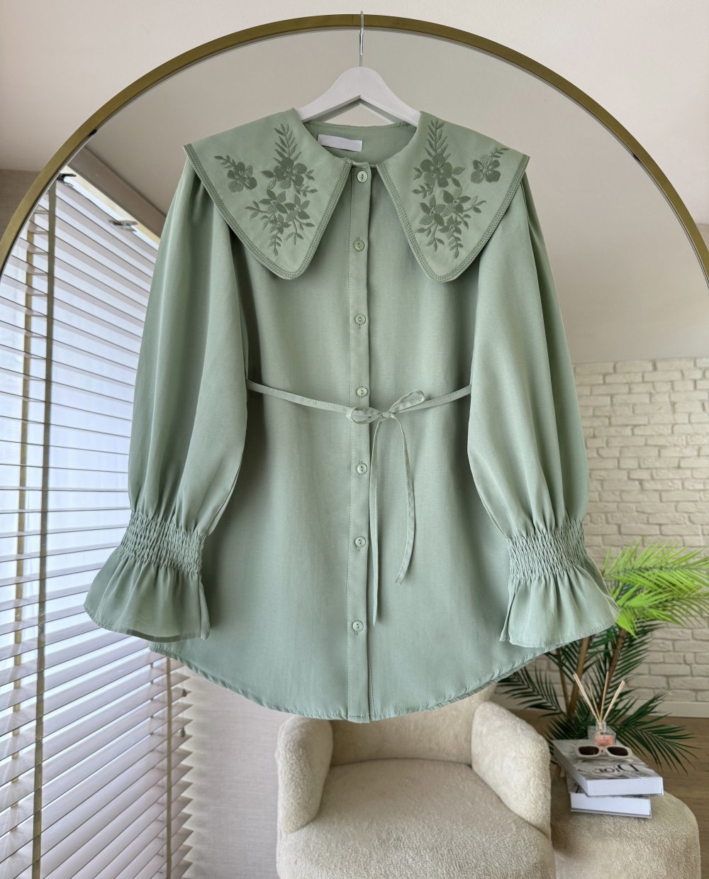Yakası Nakışlı Gömlek Yeşil
