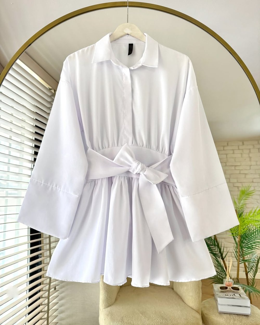 Yarım Patlı Beli Kuşaklı Gömlek